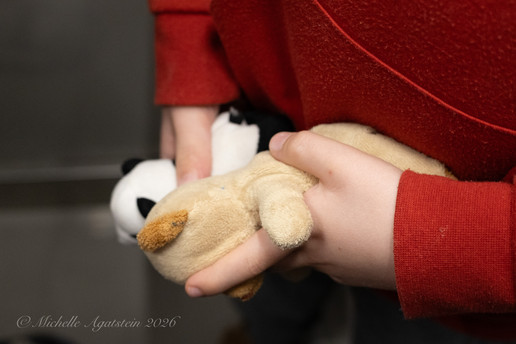 When Shlomi re-emerged from the room, he and Omri sat at the dining table and finally unboxed the "Lego" car set. We got into a conversation about the war, about how the air defense systems and the alerts work (the mathematics and polygons behind it), and the work he's done with his military unit in search and rescue in international emergencies, like the earthquake in Turkiye. He was humble in admitting that his unit is #1 in the world. As we spoke, Omri started getting visibly frustrated with constructing the toy set. Shlomi, an architect by trade, explained to me that Omri would often take shortcuts in construction. I was feeling guilty, as I don't think it was just the corner-cutting that was frustrating Omri. I had reached a point of overstaying my welcome. An alert interrupted our conversation, and when we exited from the miklat, I excused myself back to my own apartment, carrying a container of leftover food that they'd so kindly provided.